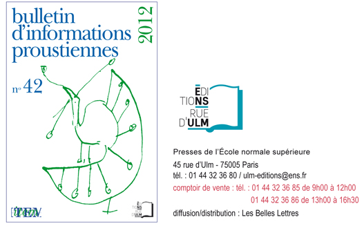 Ce numéro contient de nombreux inédits, les Actes de la journée d’étude « Essai et fiction dans la Recherche: le partage des genres? » organisée à l’ENS par Maya Lavault au printemps de 2011, ainsi qu’une nouvelle rubrique « Notes de lecture » animée par Guillaume Perrier. Vous pouvez vous le procurer en ligne