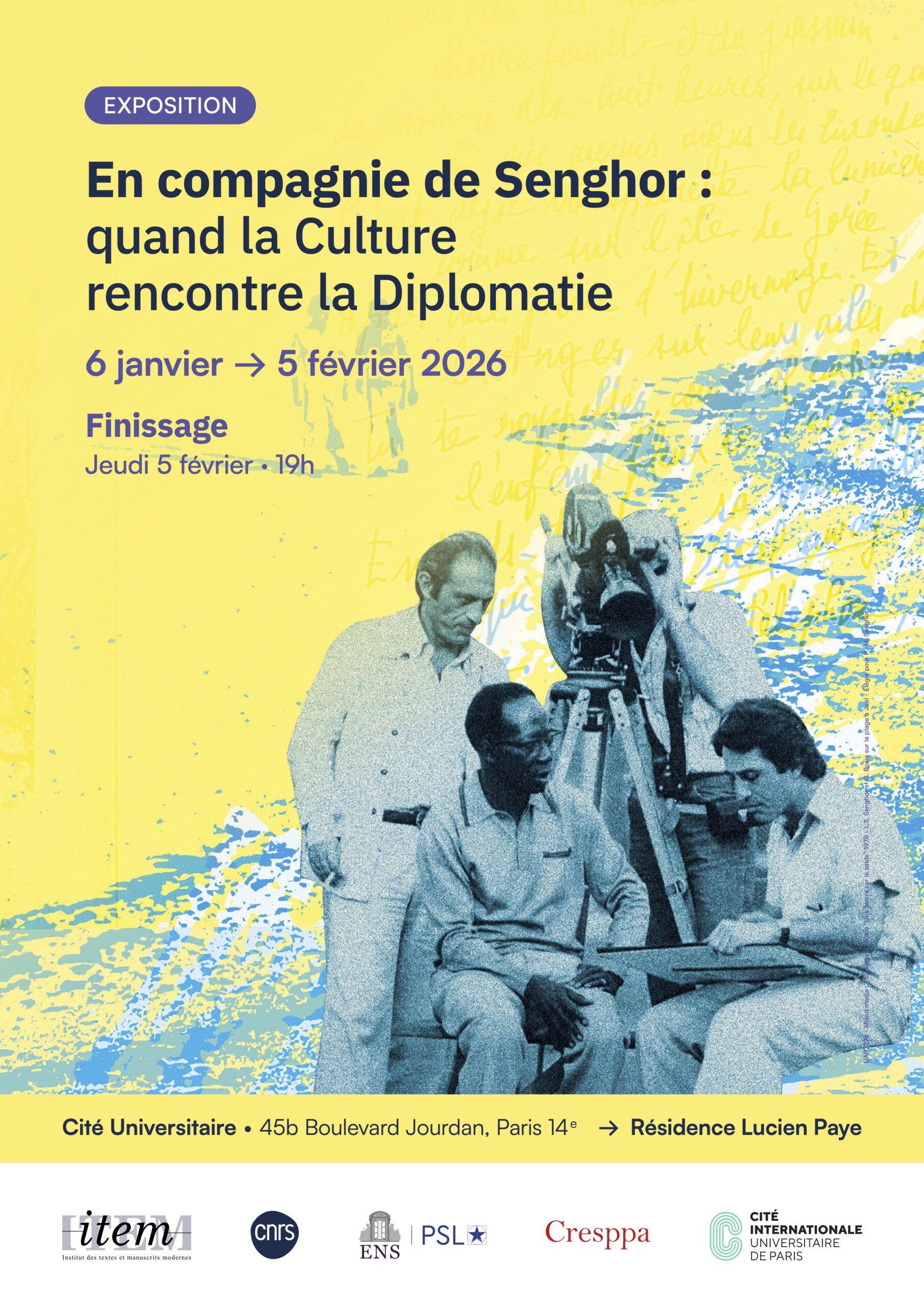L’exposition, précédemment présentée sur le site Pouchet du CNRS – une quarantaine de photographies grand format complétées par des reproductions de manuscrits – est conçue en deux volets : culture et diplomatie, pour accompagner au plus près les relations particulières qui se sont tissées entre le Président Senghor et son conseiller et ami.
